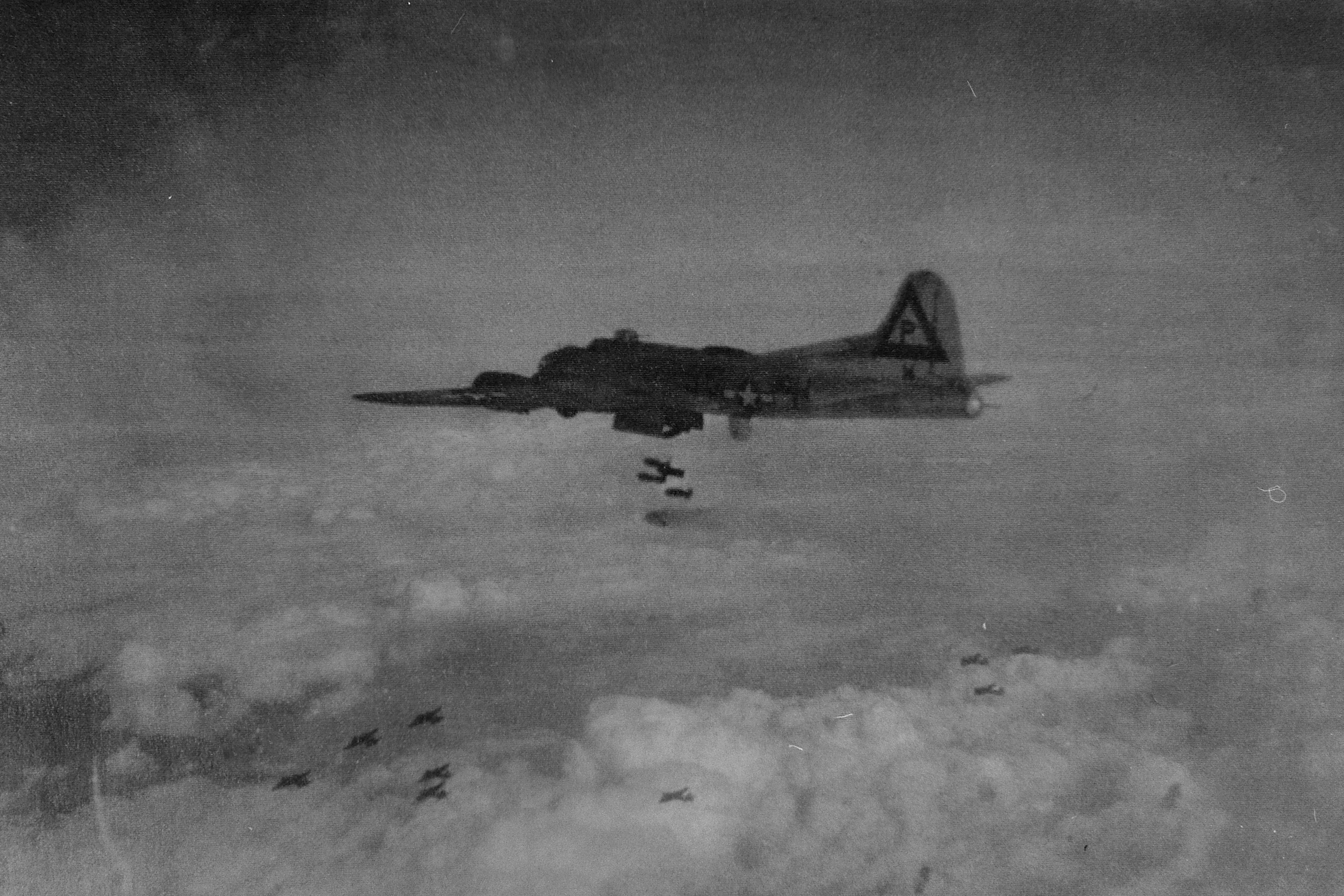 384th B-17G pathfinder aircraft dropping bombs