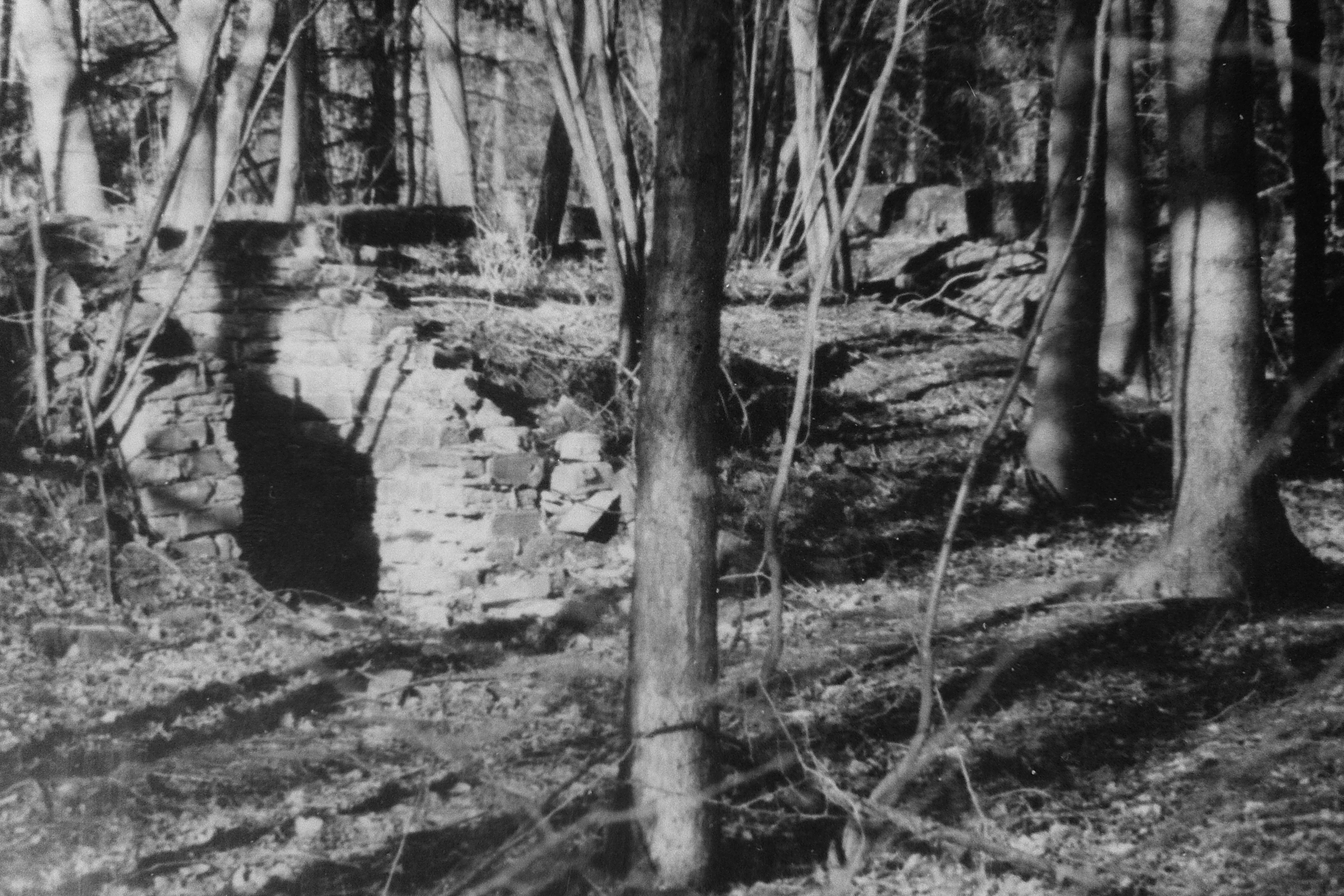 Grafton Underwood overgrown bricks of the Officers' Mess, 1990's; Tony Plowright photo