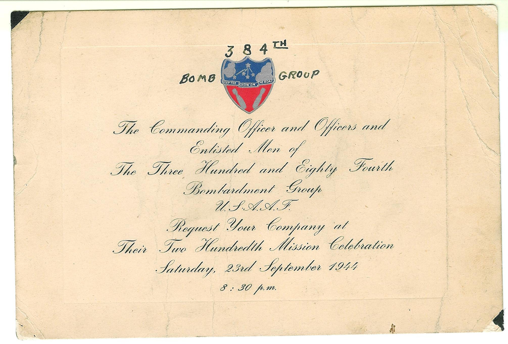 Welcome to the 384th Bombardment Group (Heavy) Photo Gallery. This gallery makes available the photographic and documentary portion of the 384th BG record. All content on this gallery is visible to all visitors. Those wishing to enter a comment or contribute images will need to register and log in (links at left of Home page). Please register for an account when you need access beyond viewing gallery content. For additional information about the 384th BG, visit the 384th Bomb Group website⇗.